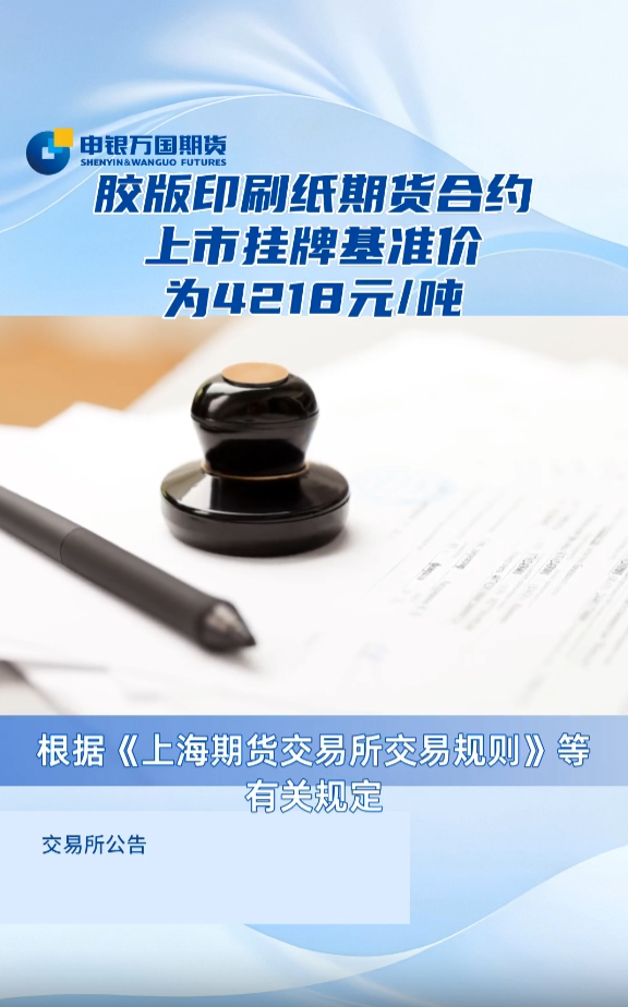 上期所:胶版印刷纸期货合约上市挂牌基准价为4218元/吨